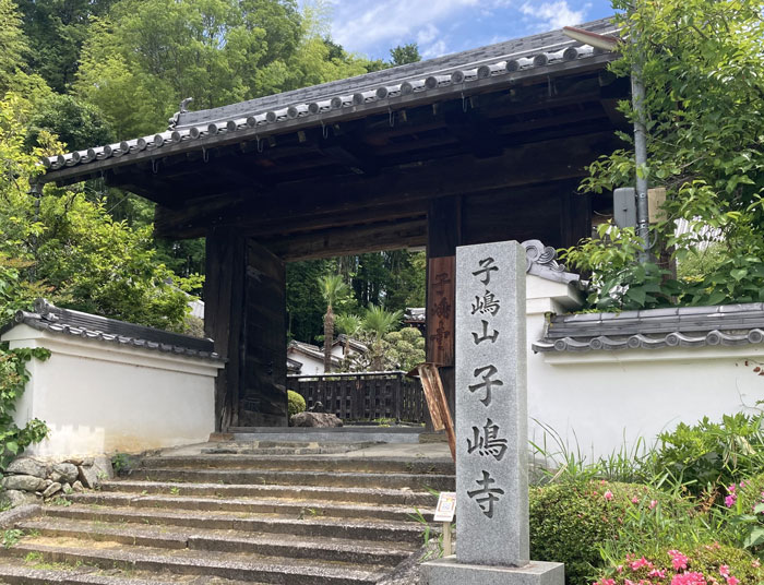 一つは子嶋寺(こじまでら)というお寺です。こちらの山門は高取城二ノ門を移築したものです。また、現在は児童公園になっていますがそこがかつて土佐小学校という学校だった頃に、校門として高取城の松の門を移築していました。現在も復元された門が公園に残っています。