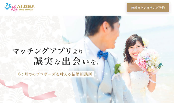 お2人がそれぞれ自分の得意分野を活かして会員様と関わられているので、本当ご夫婦でされている意味がとてもある相談所様だと思います。2人の思い出の地であるアロハを名前に冠している点も、2人で頑張っていこうという思いを感じます。