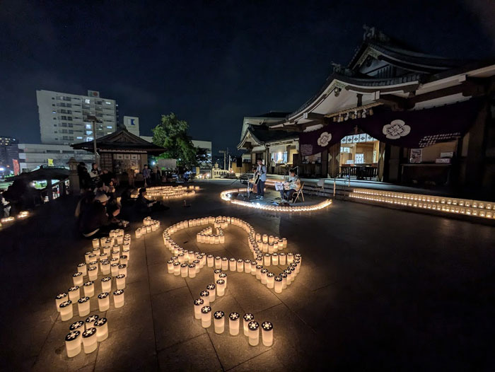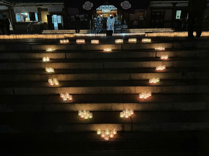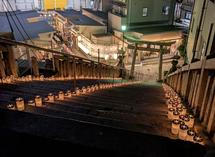 また、「関門海峡キャンドルナイト」というイベントがあり、これは毎年11月に関門海峡を挟んで下関市と北九州市で同時開催されるイベントです。そのイベントの際に当社の石段にも約1000個のキャンドルを飾り、幻想的な光景を創り出しています。