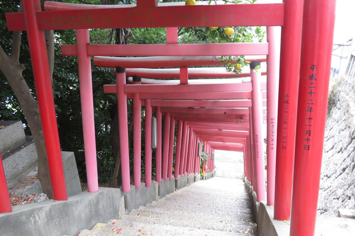 他には御朱印も多種類をご用意しています。干支の御朱印や月ごとの御朱印、夏越祭の御朱印など、シーズンごとの御朱印があります。また、ふぐの形をした絵馬も出しており、参拝される方には人気です。また当社は正面の大鳥居を上った上にあり、下から見ると少し小高い丘のようになっています。鳥居をくぐった先の階段は60段ほどあり、上からの眺めはとても壮観なものです。最近では外国人観光客の方も多く、日本らしさを感じられる場所として親しまれていると思います。