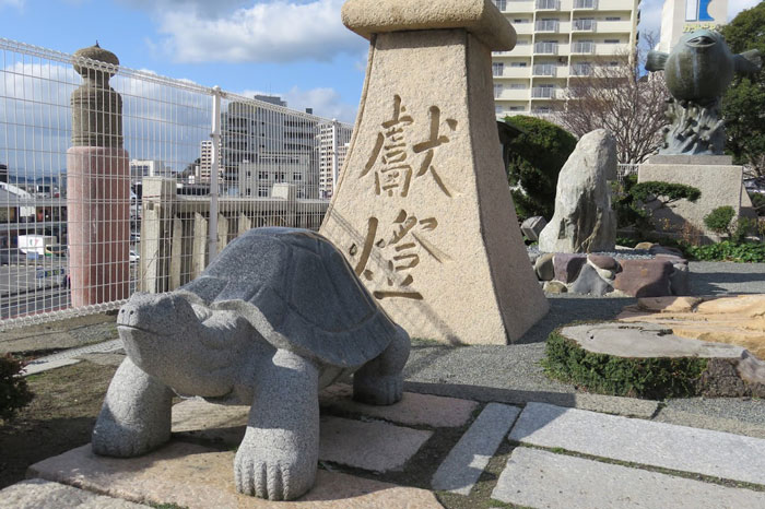 非常に貴重な鳥居なんですね!詩人の金子みすゞさんの詩碑やふぐに関する像、また亀に関するものも多く残されていますね。
