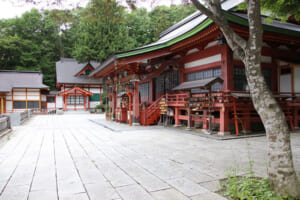 根元部分が手を繋ぐように凜とそびえる夫婦杉は、推定樹齢260年と言われています。この繋がっている根元部分には升が置かれていて、升めがけてお賽銭を投げ、一投で入るとその夫婦は永遠に寄り添えると言われています。夫婦円満を祈願される方だけでなく、パートナーを探されている方は、良縁を願ってこの「夫婦杉の縁試し」に真剣に挑戦されていますよ。