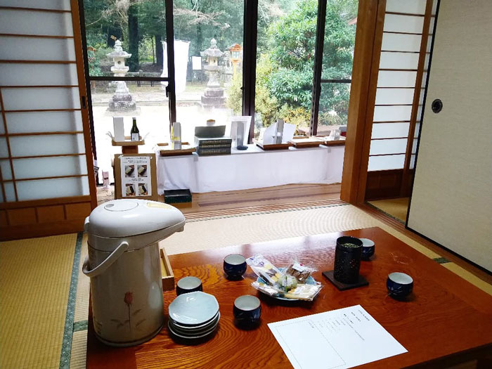 また、毎月1日には「おついたち(朔日)参り」を開催しています。1日は毎月恒例の祭典「月並祭」を行っておりますが、その月並祭にはどなたでもご自由に参列していただけます。月並祭の後には社務所で茶話会(おみやde茶話会)を開き、様々なテーマに沿ってお話をしています。茶話会では地元の手作りスイーツなども振舞っており、県内の方を中心に集まっていただいています。