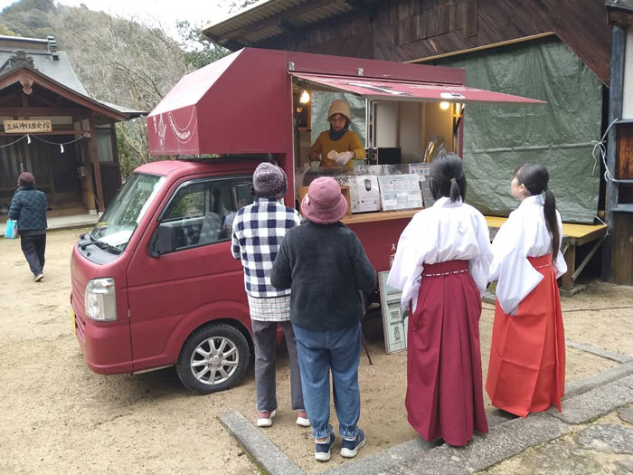 現在の宮司様は山口県で生まれ育ったわけではなく、神社の生まれという訳でもなく、一般家庭のご出身ですが、宮司として就任したこの地をとても愛されています。地元の特産品を神社で生かそうと考え、オリジナルの御守りや御朱印など、他の神社にはない授与品を多く考案されています。「弾除け神社」という名前を聞いたことがあっても、それが三坂神社の事だと知らない方が増えた昨今。様々な取り組みをとおして、再び三坂神社を世の中に周知する試みを行っています。