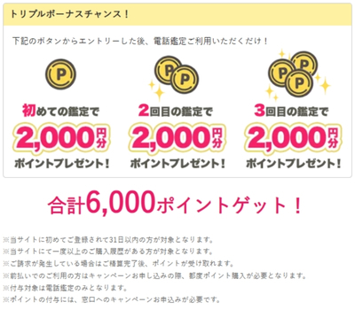 - 期間限定で人気鑑定師の鑑定料20%をポイント還元